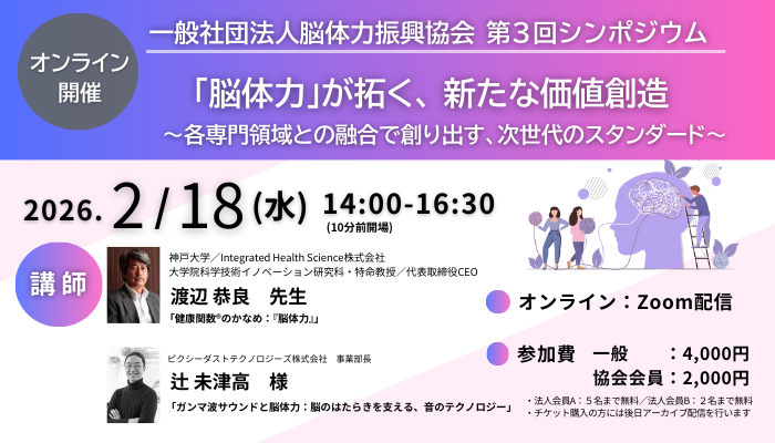 2月18日(水)に、第3回目となる脳体力振興協会事務局のシンポジウムを開催いたします。